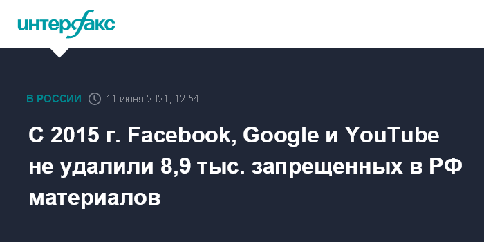 С 2015 г. Facebook, Google и YouTube не удалили 8,9 тыс. запрещенных в РФ материалов