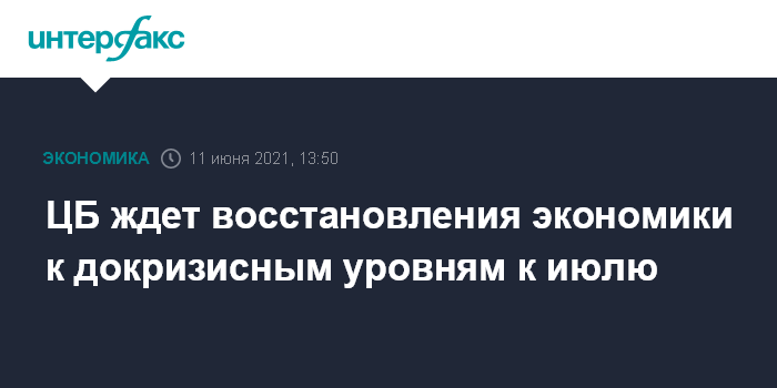 ЦБ ждет восстановления экономики к докризисным уровням к июлю