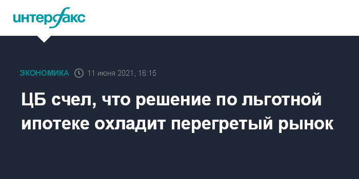 ЦБ счел, что решение по льготной ипотеке охладит перегретый рынок