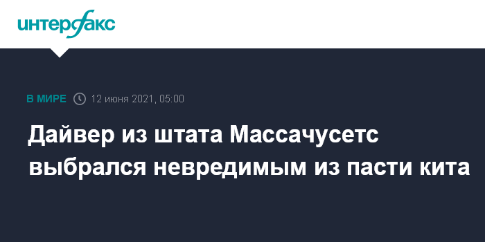 Москва. 12 июня. INTERFAX.RU - Ловец лобстеров Майкл Паккард из штата Массачусетс выжил после того, как его проглотил горбатый кит, сообщает BBC News.