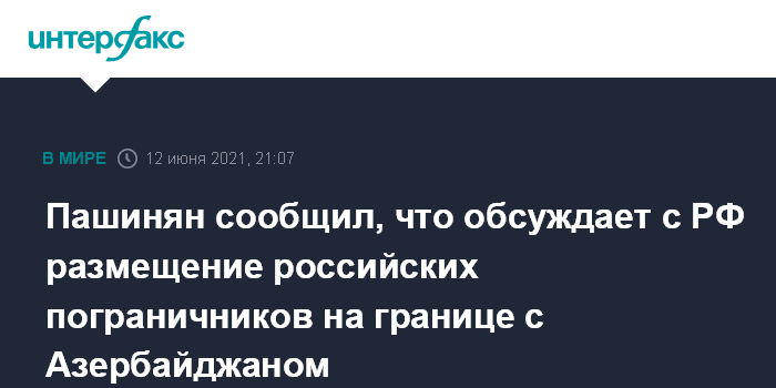 Москва. 12 июня. INTERFAX.RU - Исполняющий обязанности премьер-министра Армении Никол Пашинян сообщил, что обсуждает с Москвой вопрос о размещении российских пограничников и международных наблюдателей в приграничной линии с Азербайджаном с востока до юга Армении.