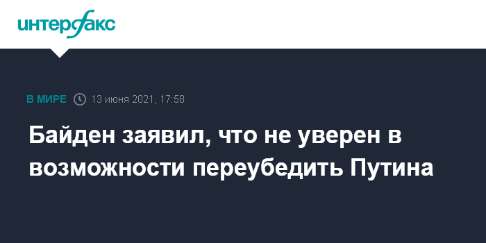 Москва. 13 июня. INTERFAX.RU - Президент США Джо Байден заявил об отсутствии гарантий того, что сможет убедить своего российского коллегу Владимира Путина в необходимости изменить поведение России.