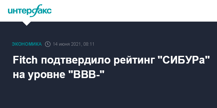 Москва. 14 июня. INTERFAX.RU - Международное рейтинговое агентство S&P Global Ratings подтвердило долгосрочный рейтинг дефолта эмитента российской нефтехимической компании "СИБУР" на уровне "BBB-" со "стабильным" прогнозом.