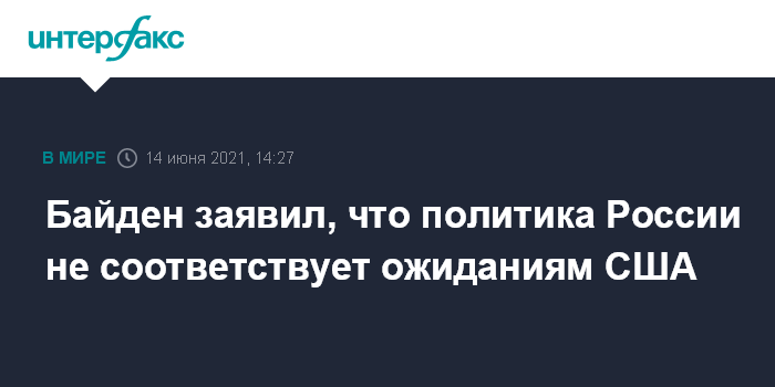 Москва. 14 июня. INTERFAX.RU - РФ ведет политику не в соответствии с ожиданиями США и представляет собой "новый вызов", заявил в понедельник на саммите НАТО американский президент Джо Байден.