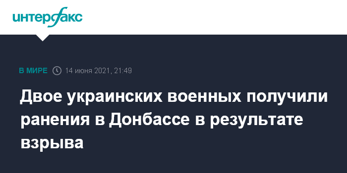 Москва. 14 июня. INTERFAX.RU - Двое военнослужащих Вооруженных сил Украины получили осколочные ранения в результате взрыва неизвестного взрывного устройства в Донбассе, оба госпитализированы, сообщили в Оперативно-тактической группировке (ОТГ) '' Восток ''.