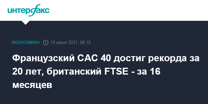 Французский CAC 40 достиг рекорда за 20 лет, британский FTSE - за 16 месяцев