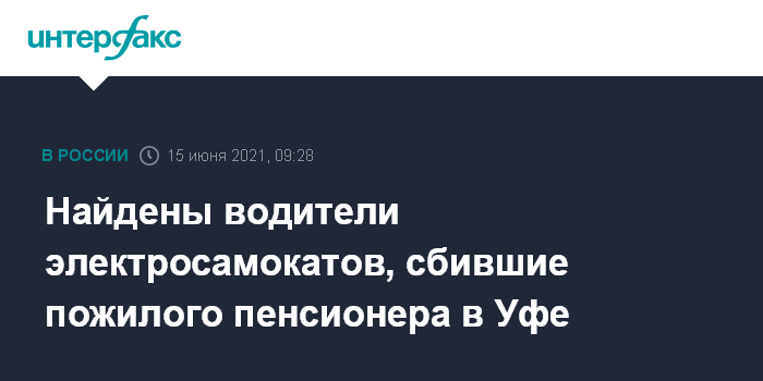 Москва. 15 июня. INTERFAX.RU - Уфимские полицейские установили личности мужчин, предположительно, наехавших на пенсионера на электросамокате и скрывшихся с места происшествия.
