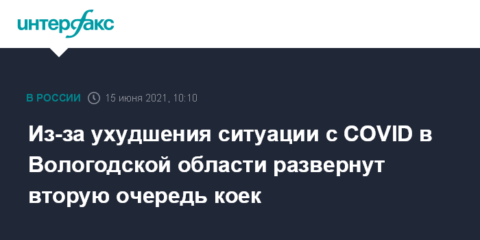 Из-за ухудшения ситуации с COVID в Вологодской области развернут вторую очередь коек