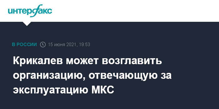 11 июня сообщалось, что исполнительный директор "Роскосмоса" по пилотируемым программам Сергей Крикалев перешел на должность советника главы госкорпорации, его направление перейдет к исполнительному директору "Роскосмоса" по науке Александру Блошенко.