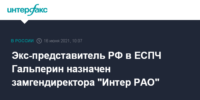 Экс-представитель РФ в ЕСПЧ Гальперин назначен замгендиректора "Интер РАО"