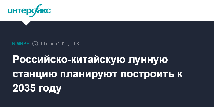 Москва. 16 июня. INTERFAX.RU - Российско-китайская научная станция будет развернута и заработает в полную силу к 2035 году, сообщили в Китайском космическом агентстве.