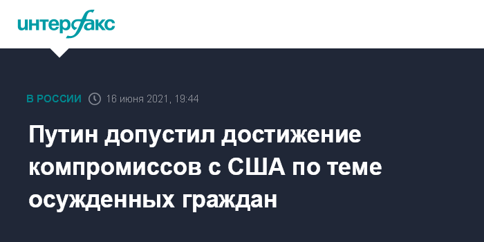 Москва. 16 июня. INTERFAX.RU - Москва и Вашингтон могут найти компромиссы по вопросу отбывающих наказание россиян и американцев в двух странах и возращения их на родину, заявил президент РФ Владимир Путин.