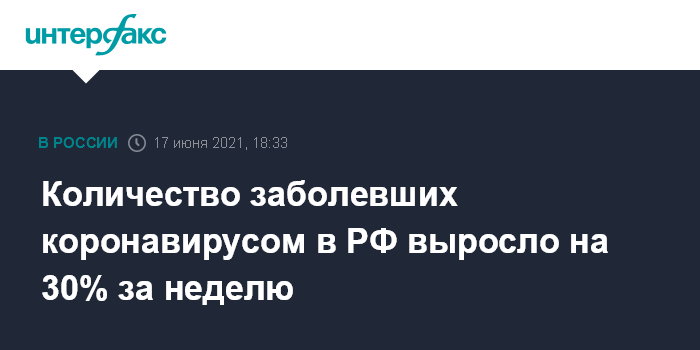 Москва. 17 июня. INTERFAX.RU - Количество заболевших коронавирусом в РФ за последнюю неделю выросло на 30%, на 32,5% увеличился рост госпитализаций, сообщил министр здравоохранения России Михаил Мурашко.