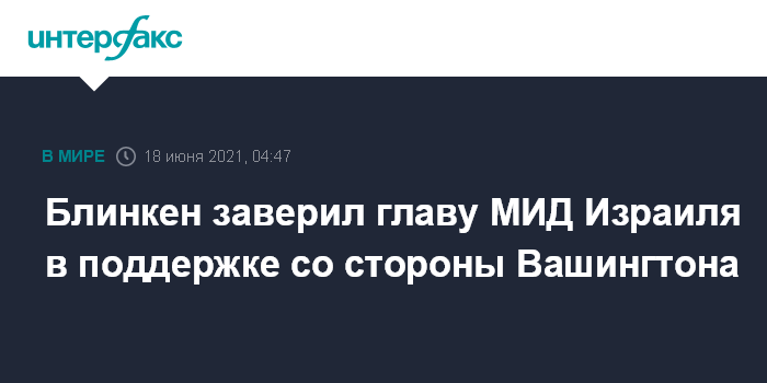 Москва. 18 июня. INTERFAX.RU - Госсекретарь США Энтони Блинкен в телефонной беседе с новым министром иностранных дел Израиля Яиром Лапидом подчеркнул неизменность поддержки Тель-Авива со стороны Соединенных Штатов в плане обеспечения безопасности, сообщил американский госдепартамент.