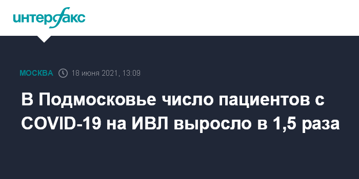 Москва. 18 июня. INTERFAX.RU - Число пациентов, подключенных к аппаратам искусственной вентиляции легких (ИВЛ), в Подмосковье существенно выросло по сравнению с предыдущей волной пандемии. Об этом сообщил губернатор Московской области Андрей Воробьев.