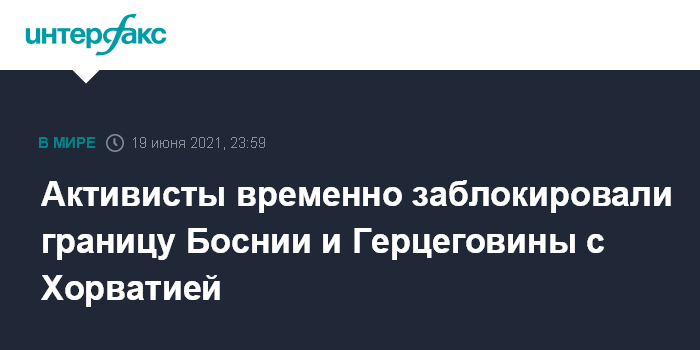 Москва. 19 июня. INTERFAX.RU - Демонстранты, выступающие против миграционной политики ЕС, временно заблокировали границу Боснии и Герцеговины с Хорватией 19 июня. Об этом сообщает Associated Press. В настоящее время движение восстановлено.