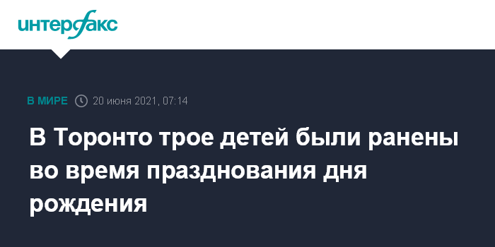 Москва. 20 июня. INTERFAX.RU - В Торонто трое детей были ранены во время празднования дня рождения в результате стрельбы. Об этом сообщает Associated Press.