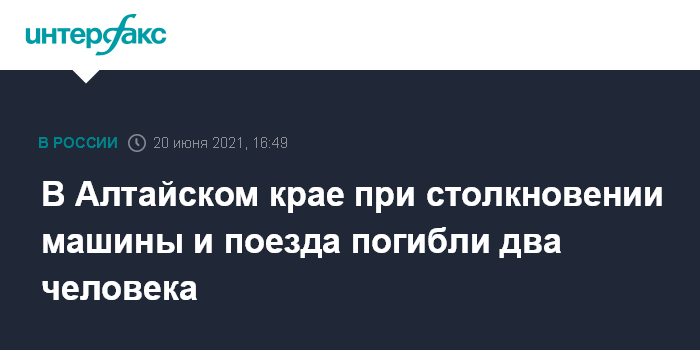 Москва. 20 июня. INTERFAX.RU - Автомобиль в Алтайском крае выехал в воскресенье на железнодорожный переезд и был сбит грузовым поездом, погибли два человека, еще двое госпитализированы, сообщает пресс-служба Западно-Сибирской железной дороги.