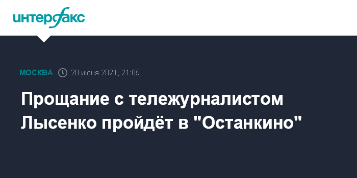 Прощание с тележурналистом Лысенко пройдёт в "Останкино"