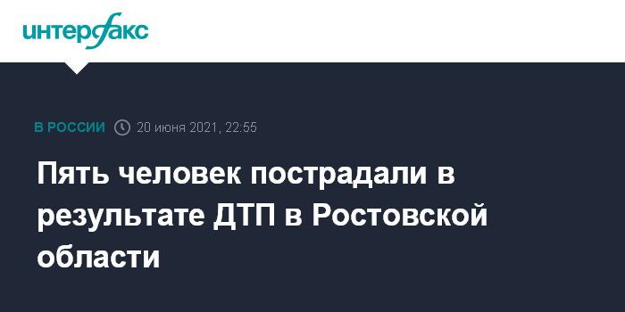Москва. 20 июня. INTERFAX.RU - Дорожно-транспортное происшествие (ДТП) с участием двух иномарок произошло в Матвеево-Курганском районе Ростовской области, по предварительным данным, пострадали пять человек, сообщает в воскресенье в районном ГИБДД.