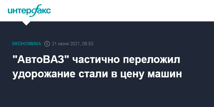 Мор отметил, что "сталь занимает серьезный процент как в массе, так и в себестоимости автомобиля", не уточнив показатели по долям. По его словам, в сложившейся ситуации ""АвтоВАЗ" никоим образом не сможет как-то "проглотить" или скомпенсировать влияние произошедшего и продолжающегося увеличения цен на сталь". "Эти цены имеют значимую составляющую в розничной стоимости нашей продукции. Мы ожидаем, что их уровень вернется или, по крайней мере, несколько стабилизируется, снизившись до конца года", - добавил он.