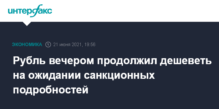 Как отмечают эксперты "Интерфакс-ЦЭА", рубль продолжает слабеть к доллару и евро на вечерних торгах, отыгрывая информацию, что администрация США разрабатывает дополнительный пакет санкций против России в связи с делом оппозиционера Алексея Навального. Об этом в воскресенье заявил советник американского президента по нацбезопасности Джейк Салливан. "Мы готовим еще один пакет санкций для применения в данном случае", - сказал он в интервью CNN. Салливан пояснил, что Вашингтон введет эти новые санкции, когда "убедится, что бьет по нужным целям".