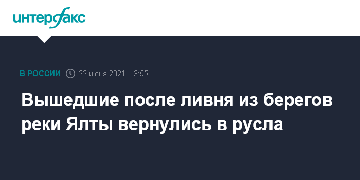 Москва. 22 июня. INTERFAX.RU - Реки, которые после сильного ливня вышли из берегов и подтопили жилые дома в Ялте, вернулись в русла, сообщил журналистам во вторник заместитель главы МЧС России Виктор Яцуценко.