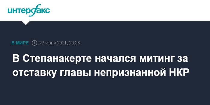 Москва. 22 июня. INTERFAX.RU - В столице непризнанной Нагорно-Карабахской республики (НКР) Степанакерте во вторник проходит многочисленный митинг с требованием отставки главы Карабаха Араика Арутюняна, передает корреспондент "Интерфакса".