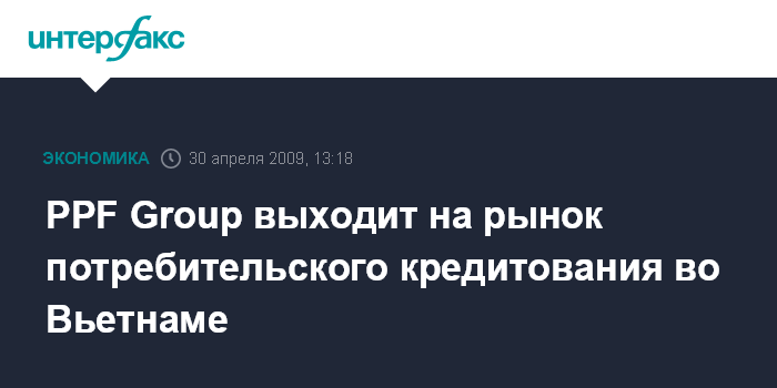 Москва. 30 апреля. INTERFAX.RU - PPF Group объявила о начале новой эры потребительского кредитования во Вьетнаме. Kомпания PPF Vietnam finance company Ltd. стала первой официально лицензированной компанией группы, занимающейся потребительским финансированием в Азии.