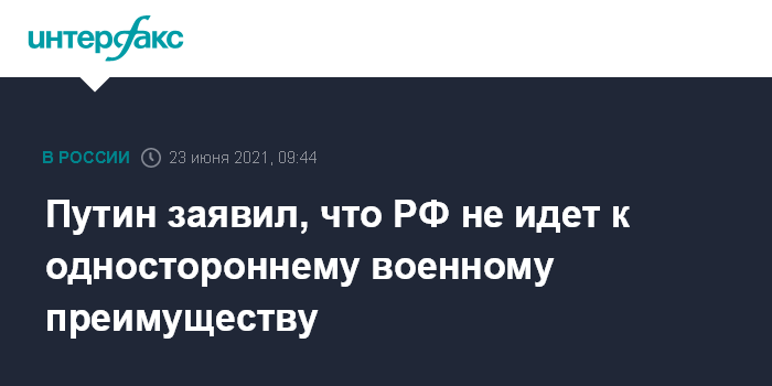 Путин заявил, что РФ не идет к одностороннему военному преимуществу
