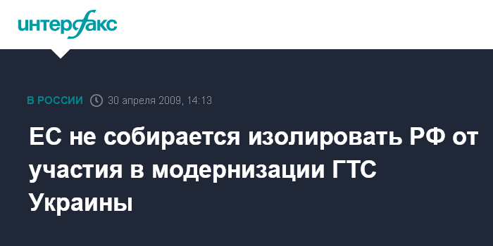 Москва. 30 апреля. INTERFAX.RU - Евросоюз не выступает против участия России в модернизации ГТС Украины, сообщил журналистам еврокомиссар по энергетике Андрес Пиебалгс.
