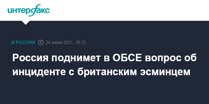 Москва. 24 июня. INTERFAX.RU - Россия поднимет в Организации по безопасности и сотрудничеству в Европе (ОБСЕ) вопрос об инцидентом с британским эсминцем в Черном море, сообщил постпред РФ Александр Лукашевич.