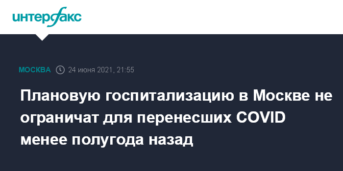 18 июня департамент здравоохранения столицы объявил, что плановой госпитализации будут подлежать только граждане, имеющие антитела к коронавирусу. Исключением будет только наличие медицинских противопоказаний к прививке, которые определит врач стационара перед госпитализацией.