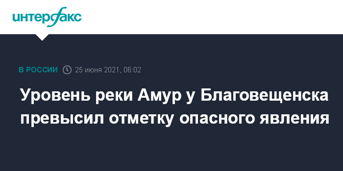 Москва. 25 июня. INTERFAX.RU - Уровень Амура у Благовещенска поднялся выше отметки опасного явления в 8 метров, сказано на сайте ГУ МЧС по Амурской области.