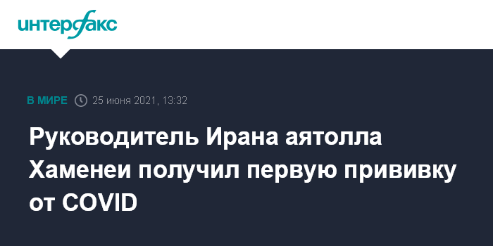 Москва. 25 июня. INTERFAX.RU - Руководитель Ирана аятолла Али Хаменеи получил первую прививку против коронавируса COVID-19.