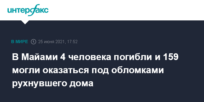 В Майами 4 человека погибли и 159 могли оказаться под обломками рухнувшего дома
