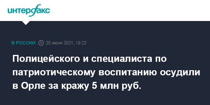 Полицейского и специалиста по патриотическому воспитанию осудили в Орле за кражу 5 млн руб.