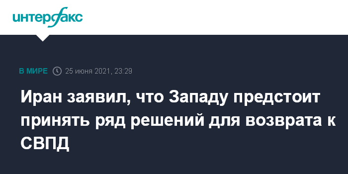Москва. 25 июня. INTERFAX.RU - В МИД Ирана заявили, что не Тегерану, а западным странам предстоит принять принципиальные решения, чтобы все стороны вернулись к выполнению условий соглашению по иранскому атому - СВПД.