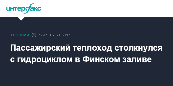 Москва. 26 июня. INTERFAX.RU - Пассажирский теплоход столкнулся с гидроциклом в акватории Финского залива в Петербурге, сообщает в субботу пресс-служба Северо-Западной транспортной прокуратуры.
