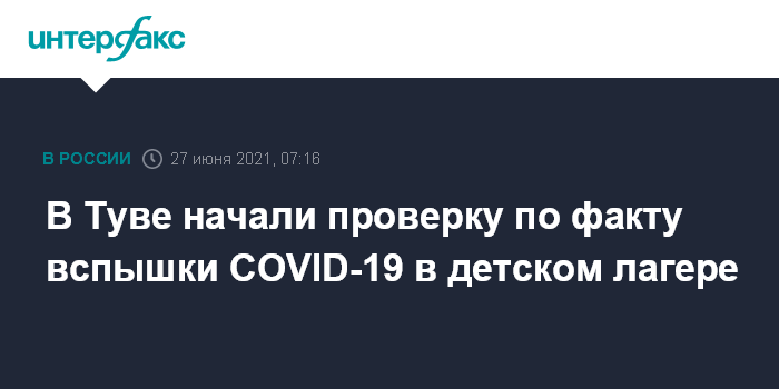 Москва. 27 июня. INTERFAX.RU - Следственное управление СКР по Республике Тува начало проверку по факту заболевания COVID-19 66 детей и 8 сотрудников в детском оздоровительном лагере, сообщает ведомство.