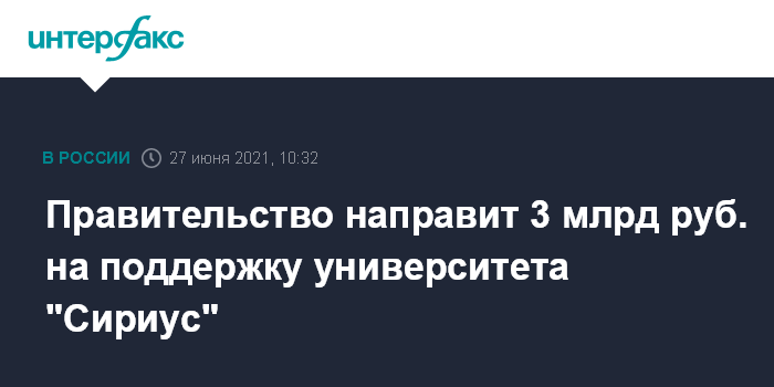 Правительство направит 3 млрд руб. на поддержку университета "Сириус"
