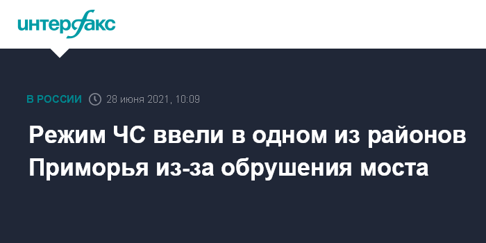 Режим ЧС ввели в одном из районов Приморья из-за обрушения моста