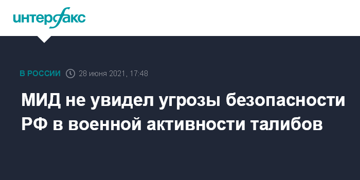 Отвечая на уточняющий вопрос о том, видят ли в Москве риски перетекания военной активности талибов на территорию сопредельных с Афганистаном государств, высокопоставленный российский дипломат сказал: "Нет, таких рисков не видим".