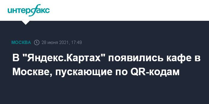 С 28 июня заведения общепита в Москве, согласно указу мэра столицы Сергея Собянина, должны перейти на систему работы по QR-кодам, которые выдаются тем, кто перенес COVID-19, прошел вакцинацию или имеет отрицательный результат теста на коронавирус. Рестораны и кафе обязаны создать систему проверки наличия QR-кодов. Те заведения, которые не выполнят эти требования, смогут работать только навынос или на доставку.