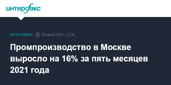 Промпроизводство в Москве выросло на 16% за пять месяцев 2021 года
