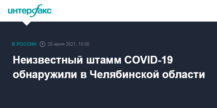 Москва. 29 июня. INTERFAX.RU - Среди пациентов с COVID-19 в Челябинской области выявлены случаи инфицирования "британским" штаммом коронавируса и один случай заражения неизвестным штаммом, сообщила "Интерфаксу" во вторник заместитель руководителя регионального управления Роспотребнадзора Светлана Лучинина.