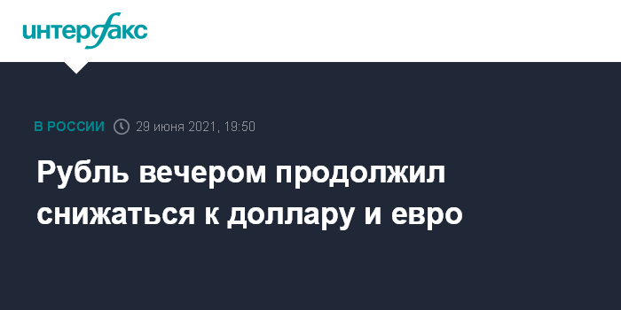 Как отмечают эксперты "Интерфакс-ЦЭА", рубль продолжает дешеветь к доллару и евро на вечерних торгах. Давление на рубль оказывают завершение накануне основных налоговых выплат июня и санкционные риски. На снижение интереса инвесторов к риску влияет также активное распространение в мире и России штамма "дельта" COVID-19.