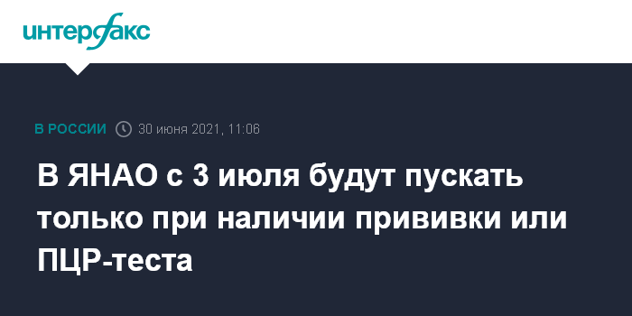 В ЯНАО с 3 июля будут пускать только при наличии прививки или ПЦР-теста