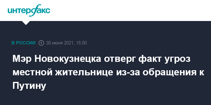 Мэр Новокузнецка отверг факт угроз местной жительнице из-за обращения к Путину