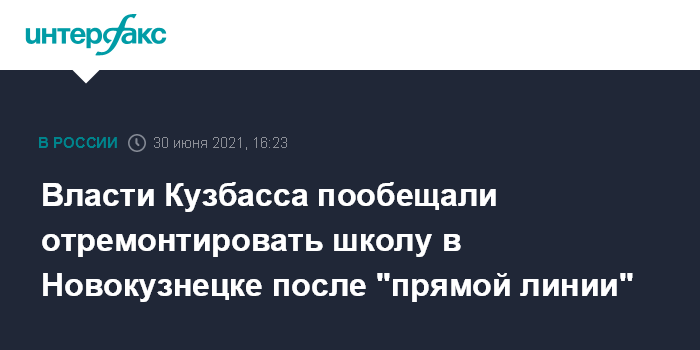 Москва. 30 июня. INTERFAX.RU - Губернатор Кемеровской области Сергей Цивилев принял решение полностью отремонтировать здание школы-детсада №235 в Новокузнецке, на отсутствие ремонта в которой жаловалась местная жительница Елена Калинина в ходе "прямой линии" с президентом РФ Владимиром Путиным.